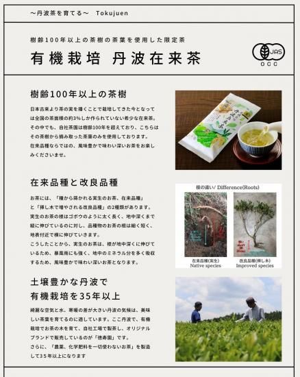 日本古来より茶の実を播くことで栽培してきた今となっては全国でも数%の希少な在来茶。農薬化学肥料を一切使用せずに栽培したお茶です。